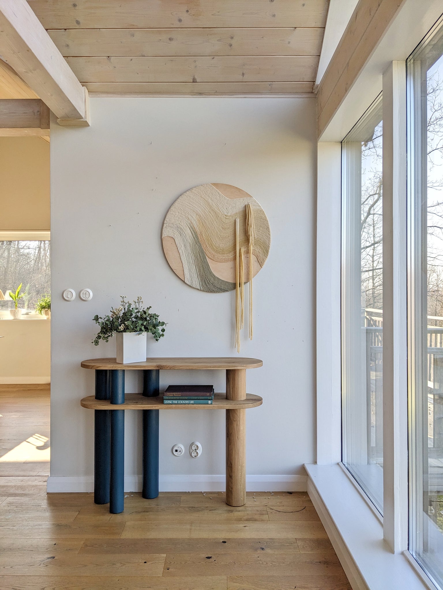 Thanks to the dyeing process, wool painting is a unique and inspiring addition to any interior. The round plywood gives it a modern note.