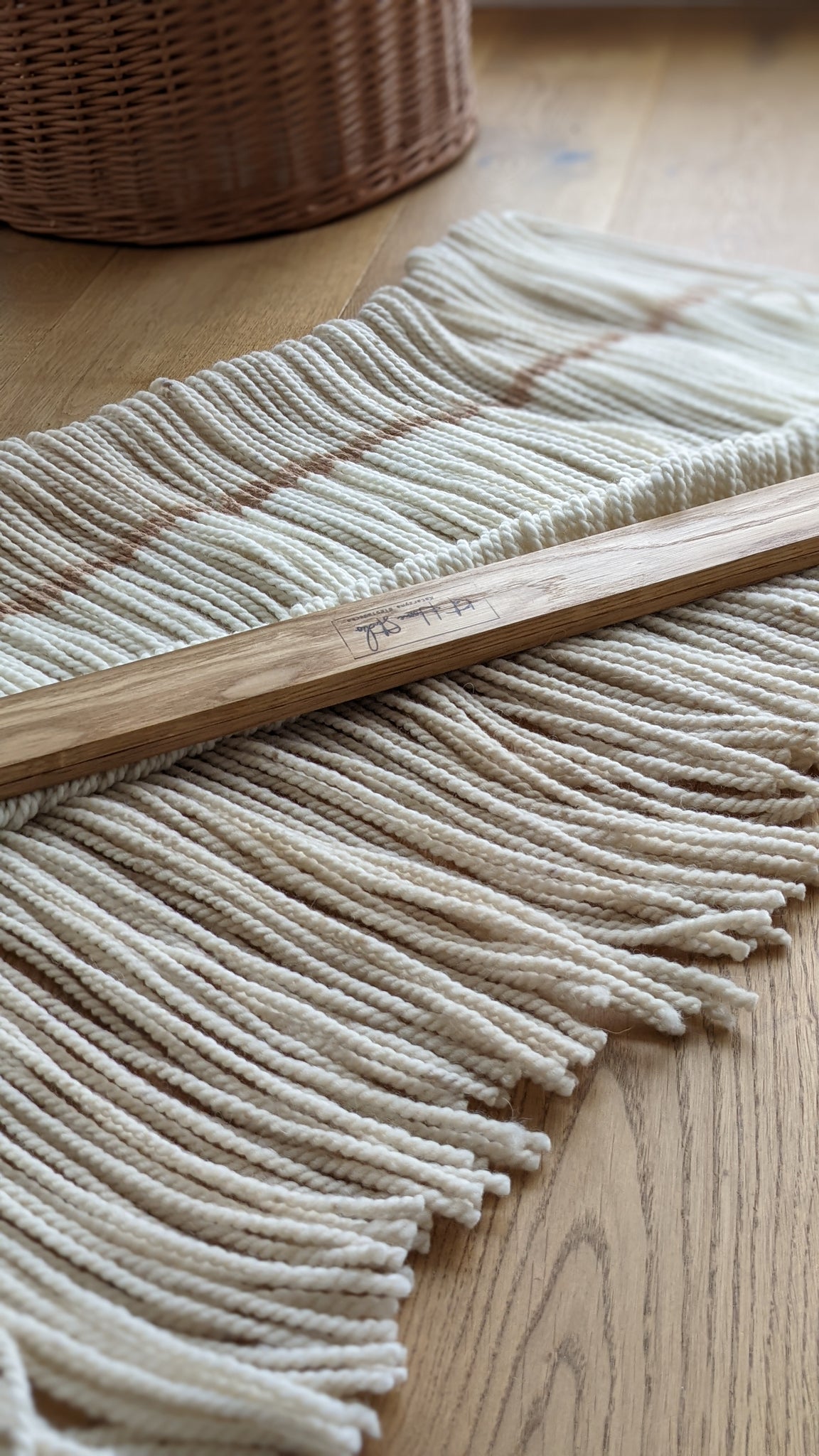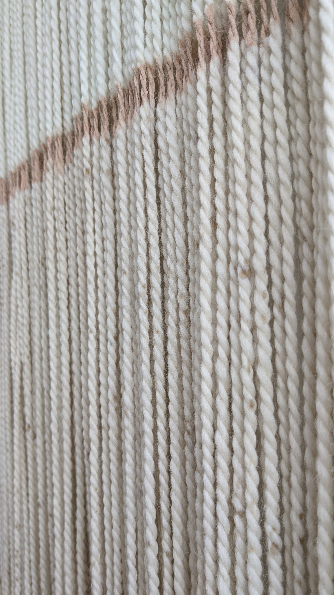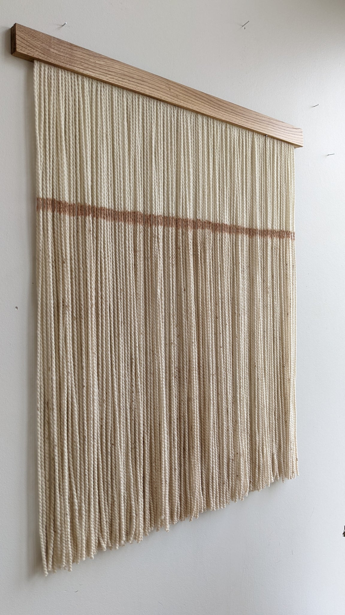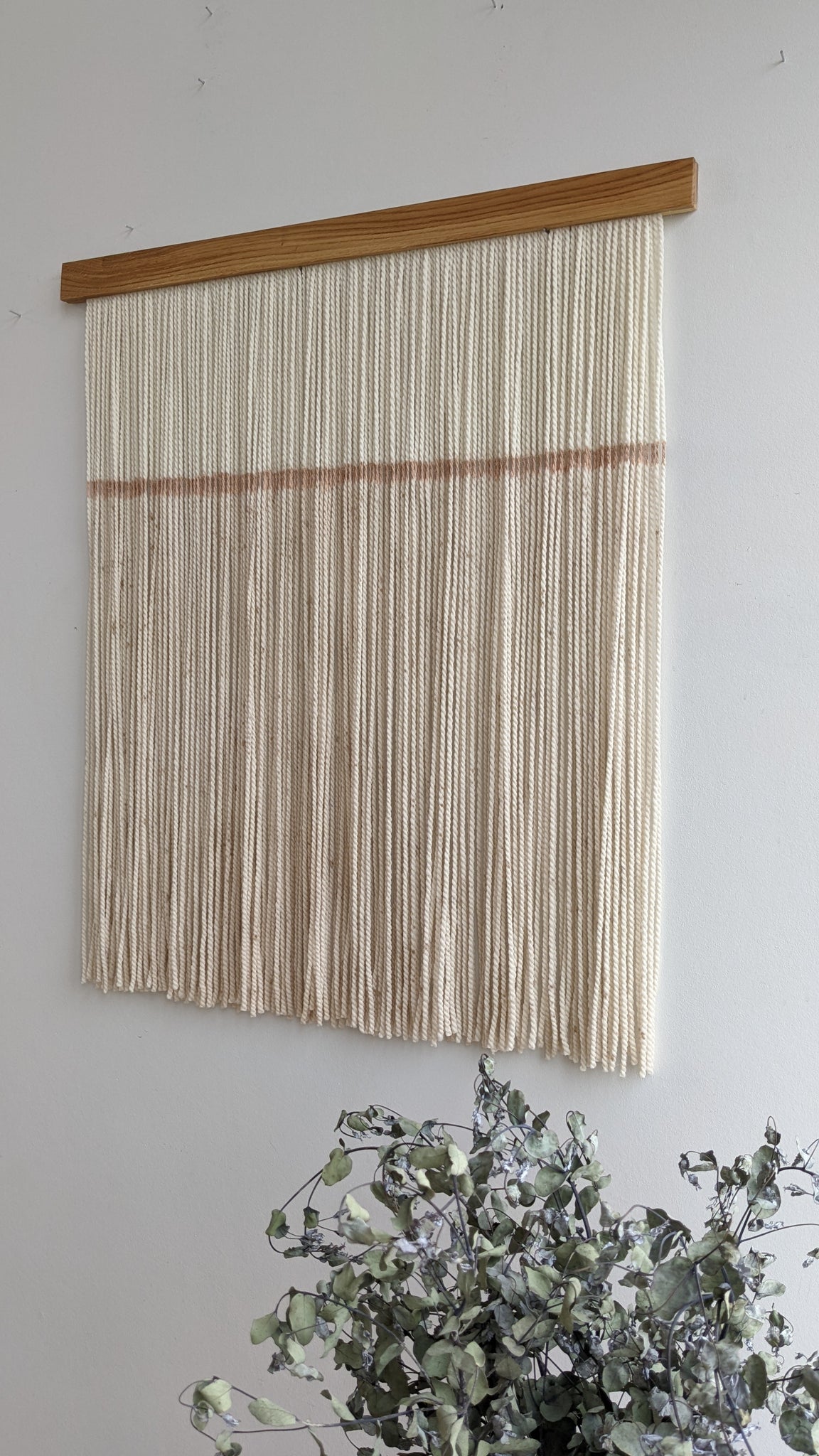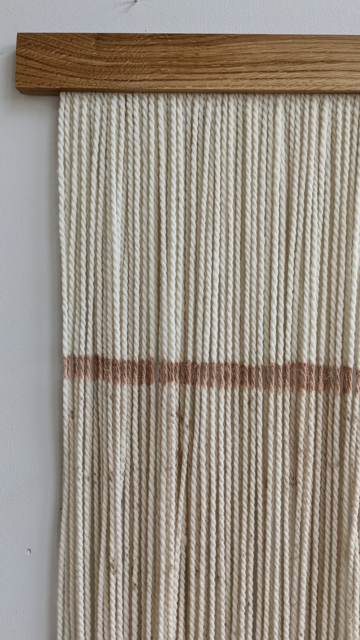 This dip dyed wall hanging is made of soft wool, in shades of warm beige, with the addition of acrylic paint (Kat's signature), finished with an oak wood panel. Fiber art like this will suit perfectly a wabi sabi living room, bohemian bedroom and warm office.