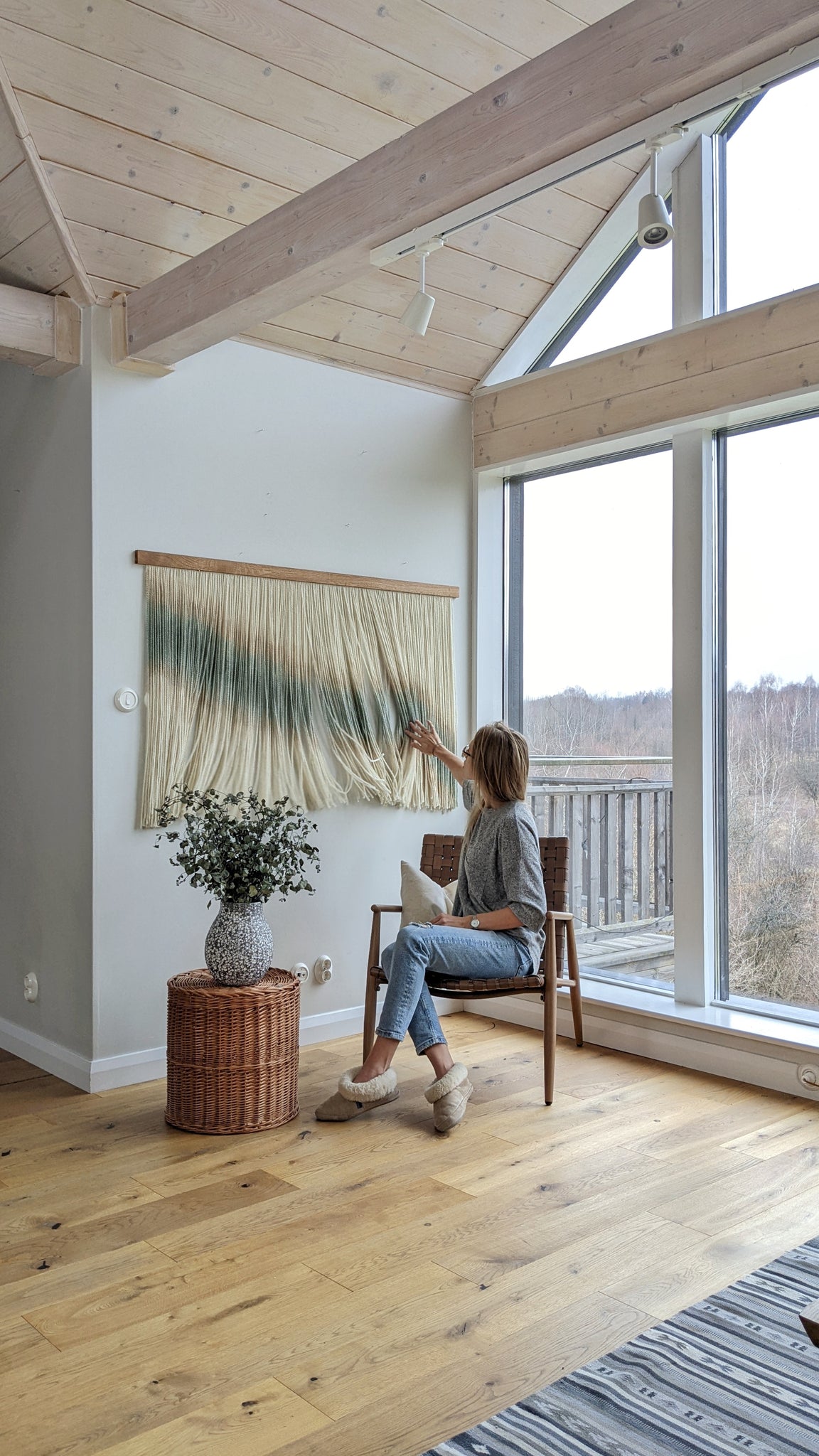 Thanks to the dyeing process, the wool painting is a unique and inspiring addition to any interior. The wood panel gives it a modern note.