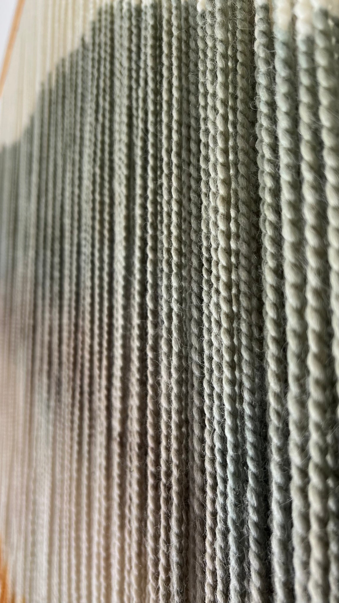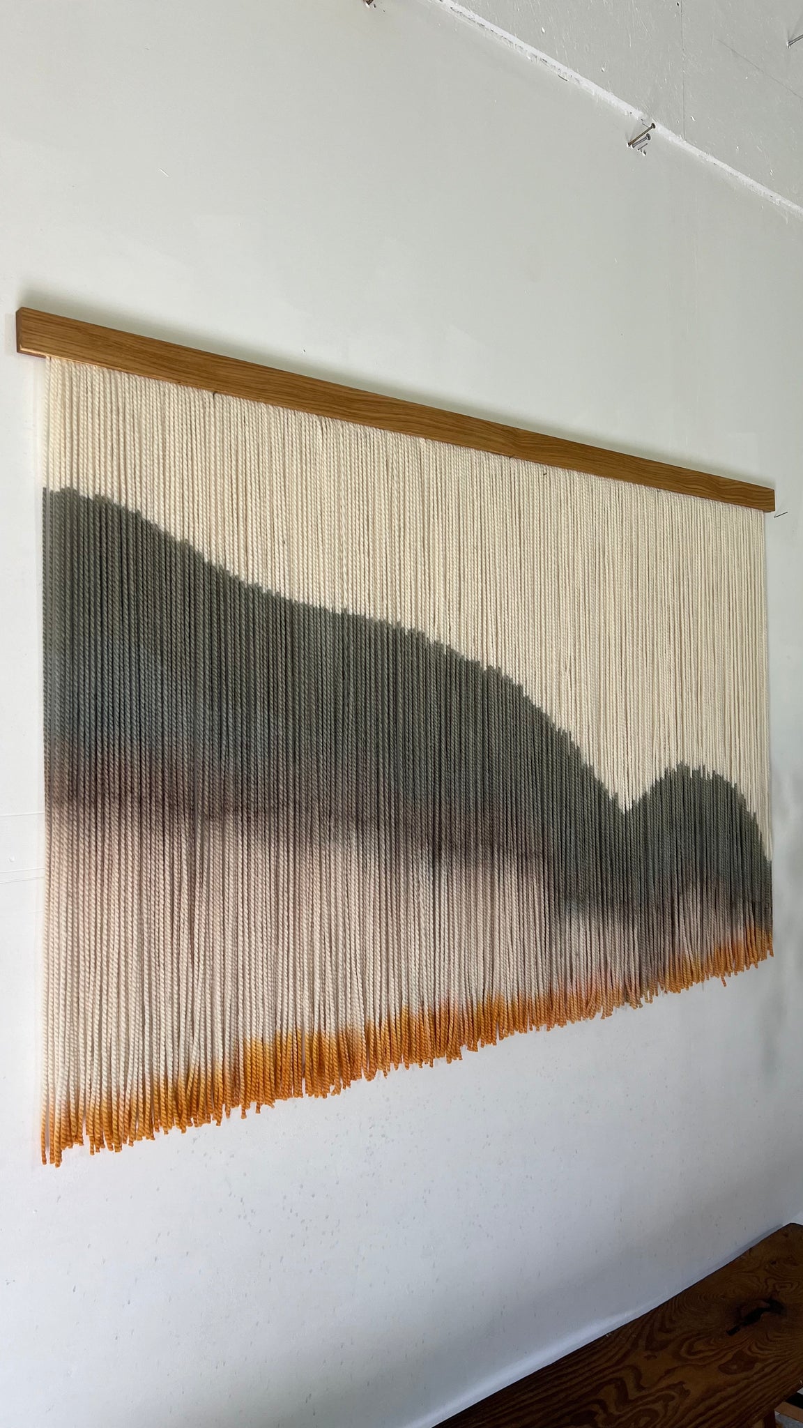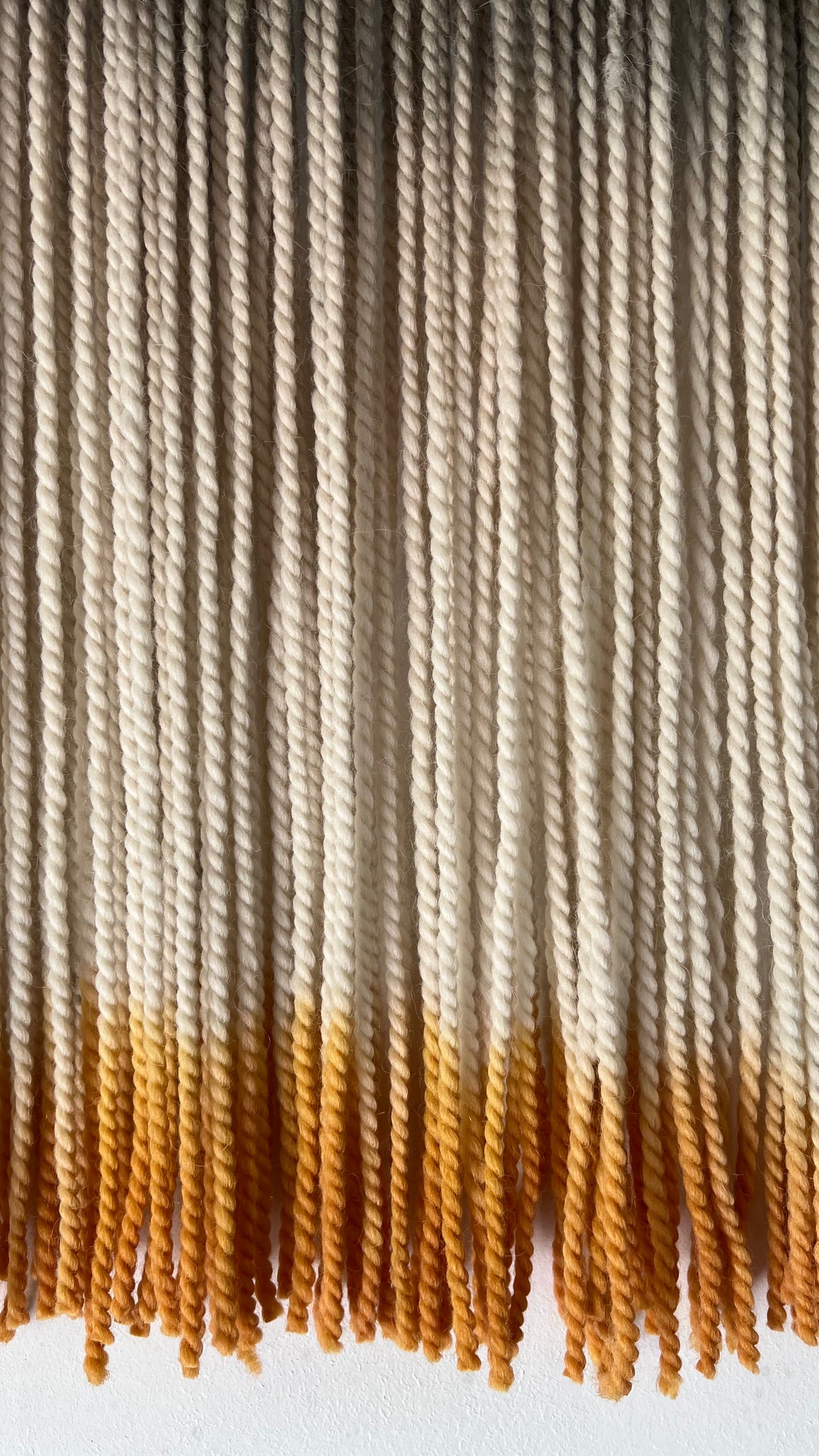 This dip dye wall hanging is made of natural color soft wool in shades of gray, charcoal, and ginger finished with an oak wood panel. Fiber art like this will suit perfectly a minimalist living room, bohemian bedroom and warm office.