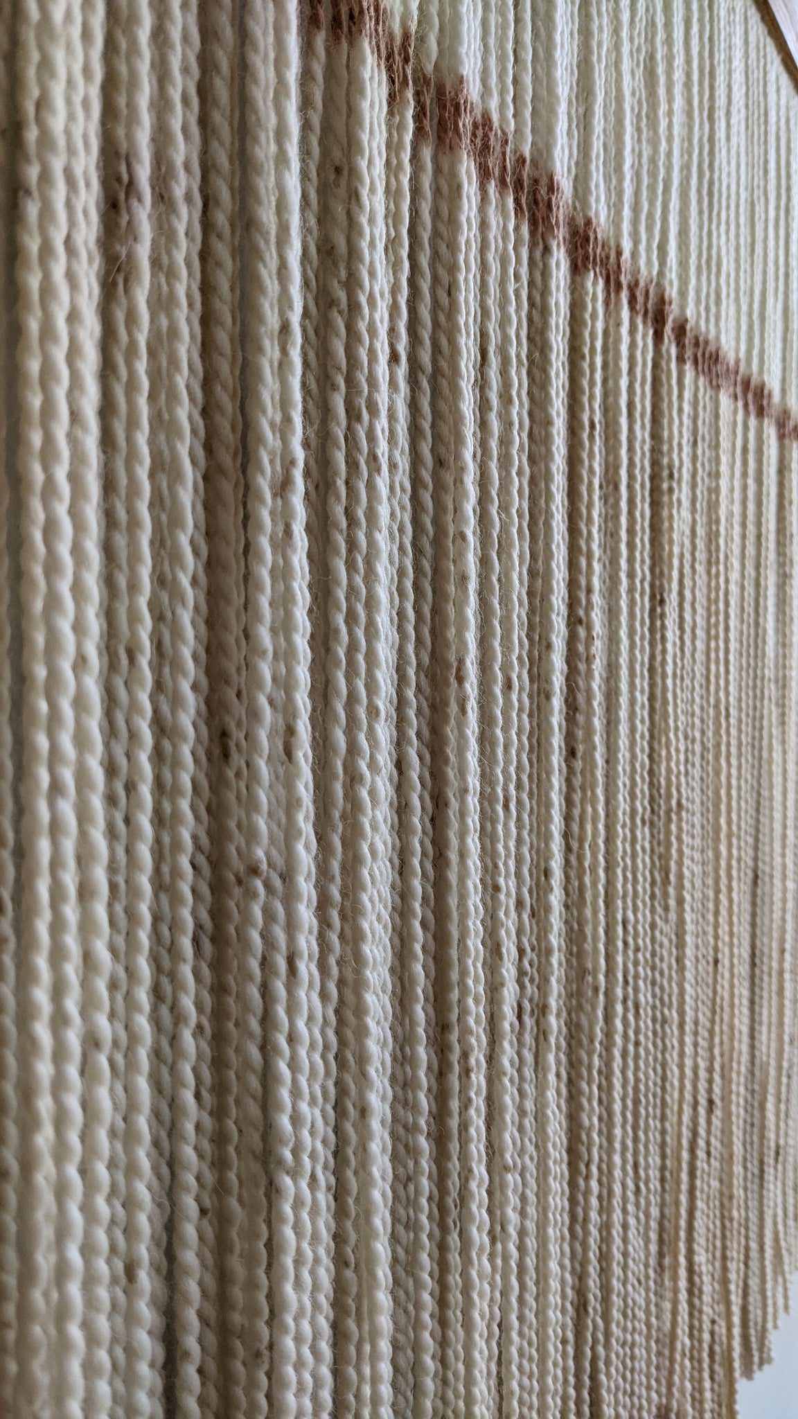 This minimal dip dyed wall hanging is made of soft wool, in shades of warm beige, with the addition of beige acrylic paint, finished with an oak wood panel. Fiber art like this will suit perfectly a minimal living room, modern bedroom, and mid-century office.