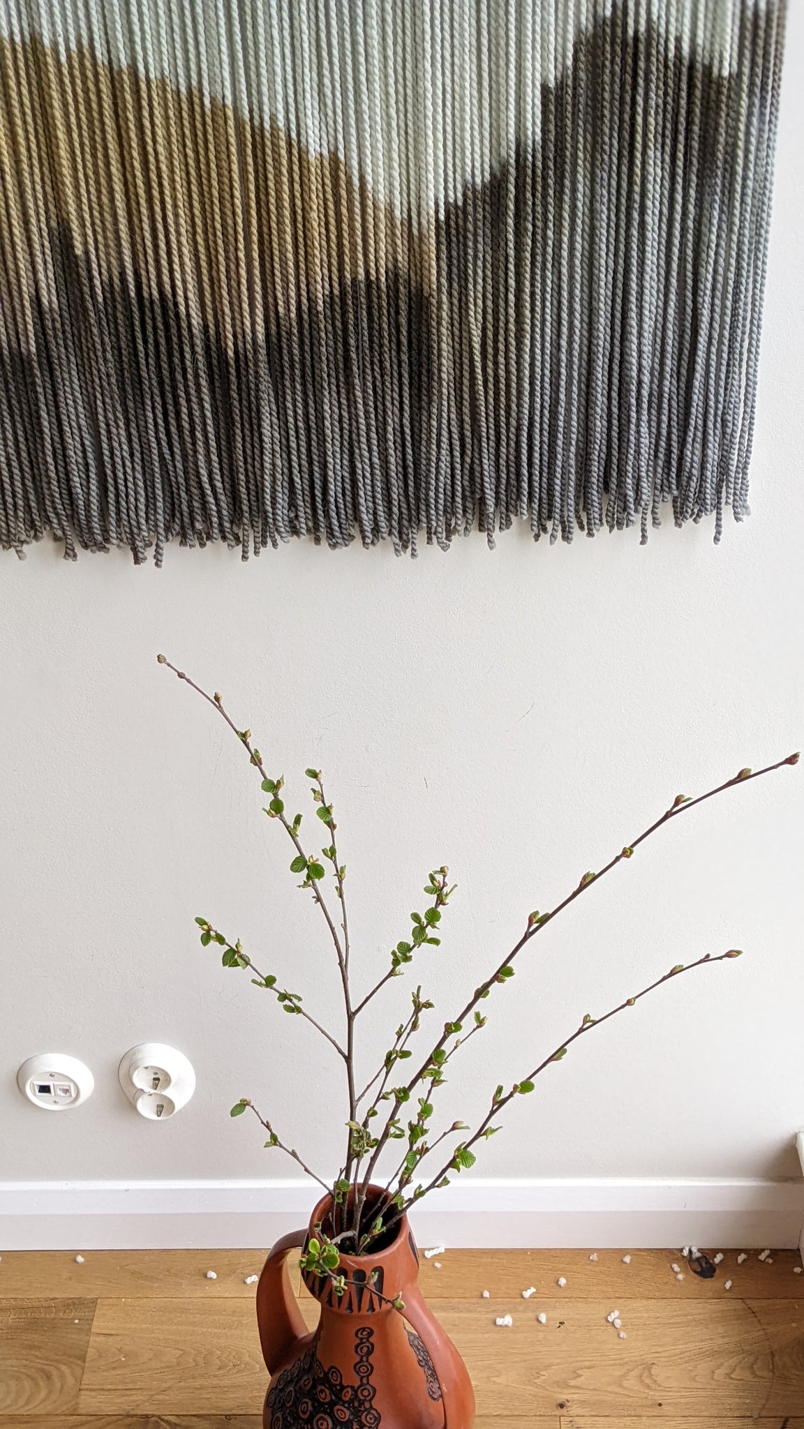 Thanks to the dyeing process, the wool painting is a unique and inspiring addition to any interior. The wood panel gives it a modern note.