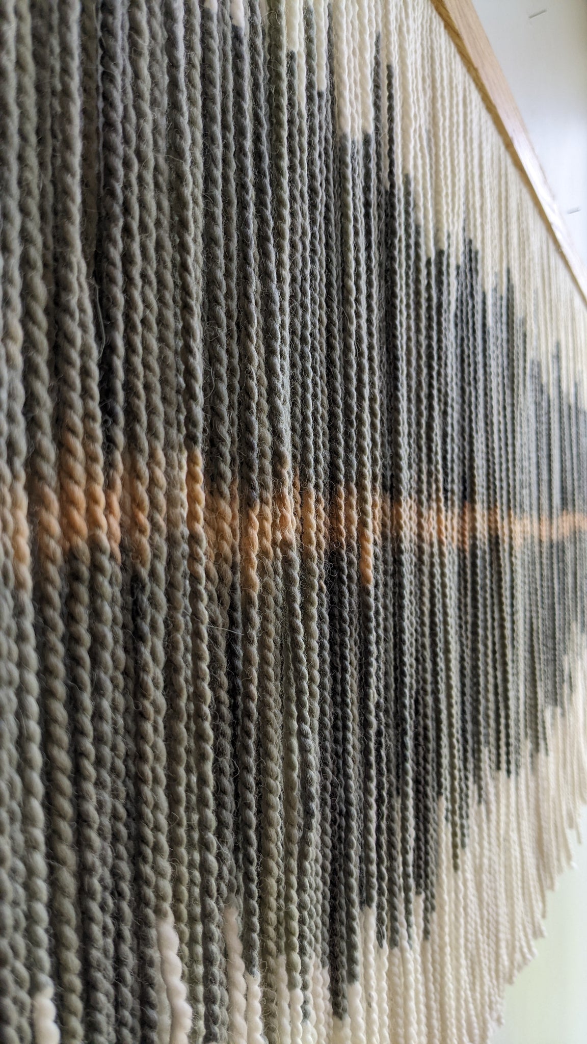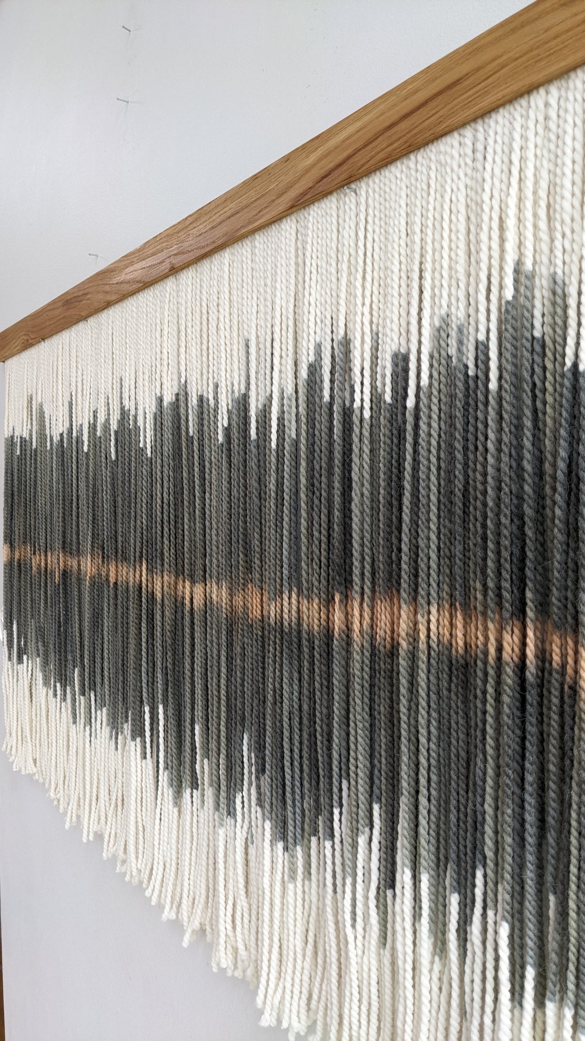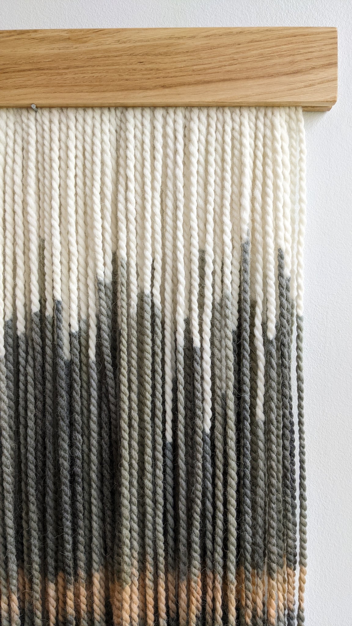 This dip dyed wall hanging is made of soft wool, in shades of black, charcoal, brown and copper, finished with an oak wood panel. Fiber art like this will suit perfectly a wabi-sabi living room, bohemian bedroom and warm office.