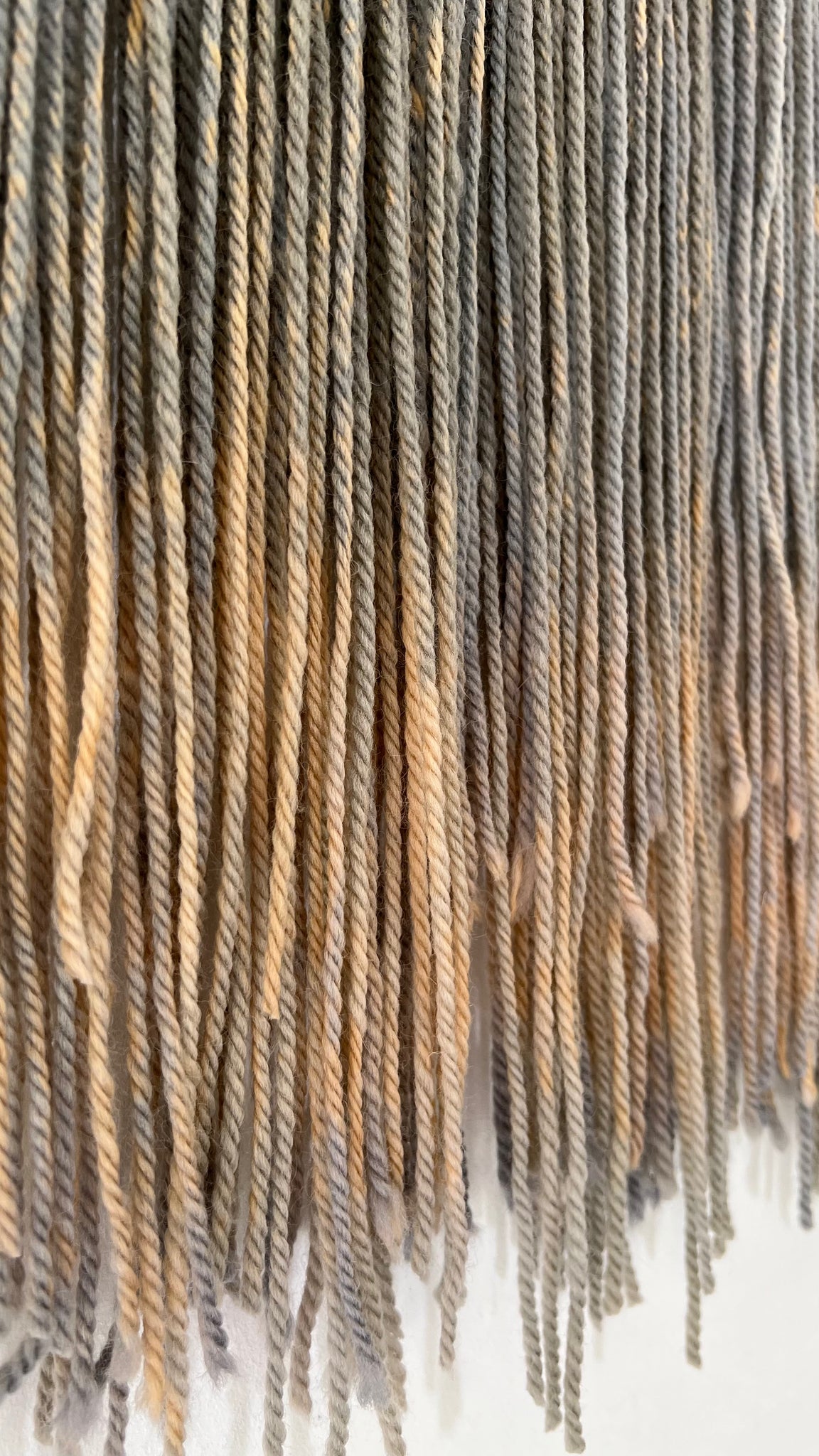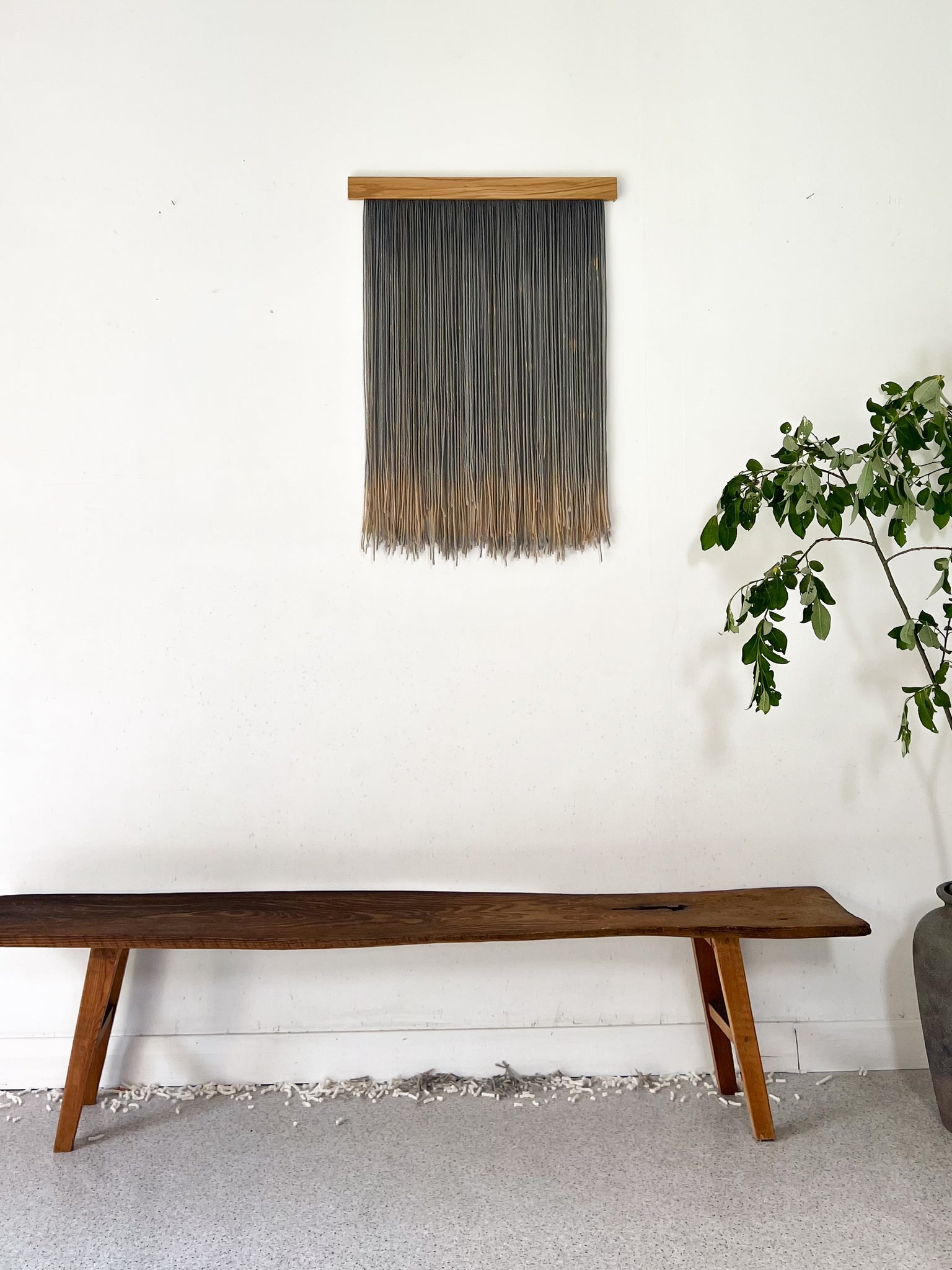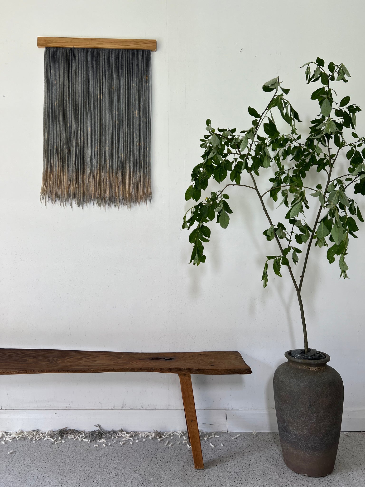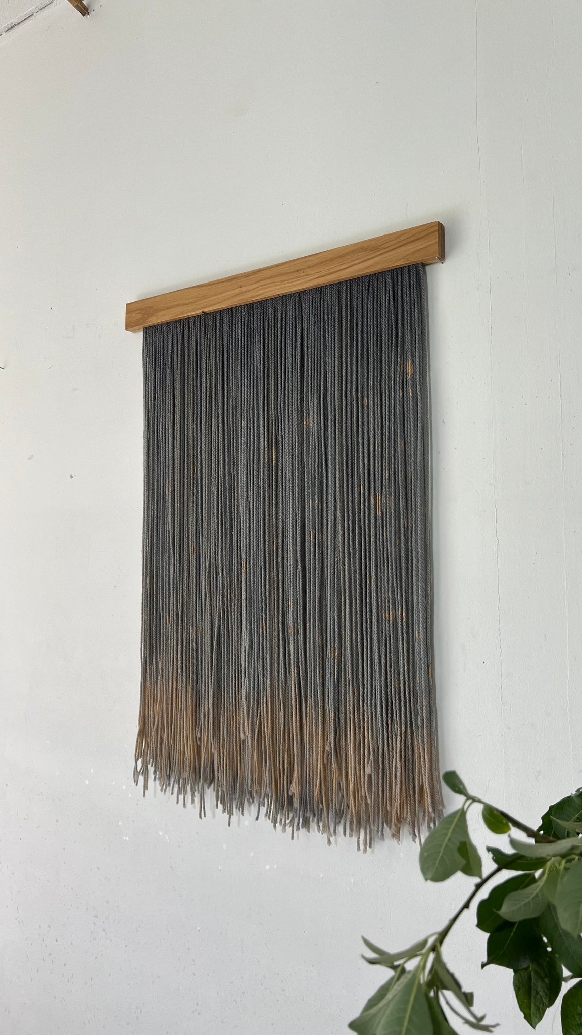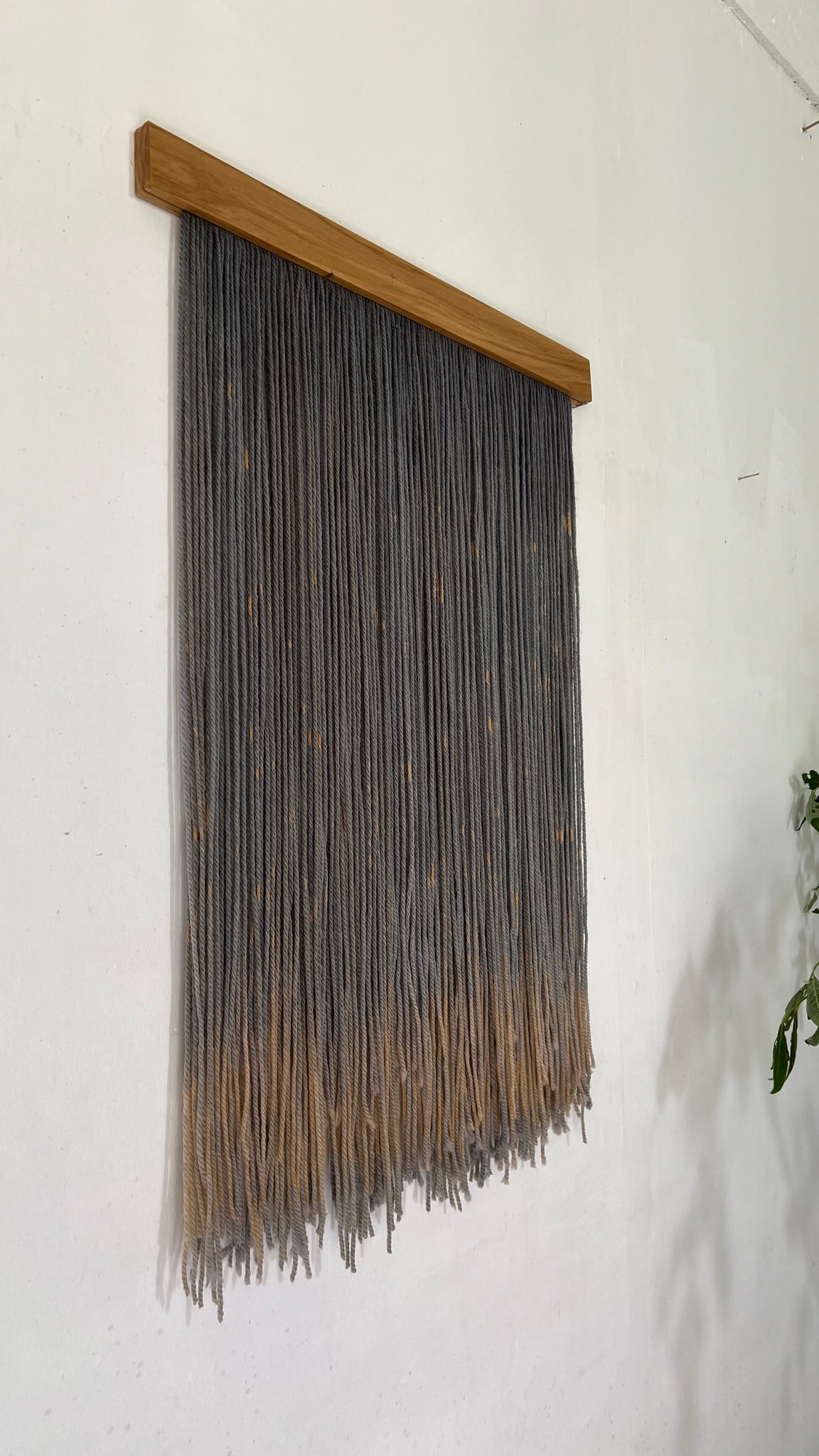 This dip dye wall hanging is made of natural color soft wool in shades of blue, navy and light ginger finished with an oak wood panel. Fiber art like this will suit perfectly a minimalist living room, bohemian bedroom and warm office.