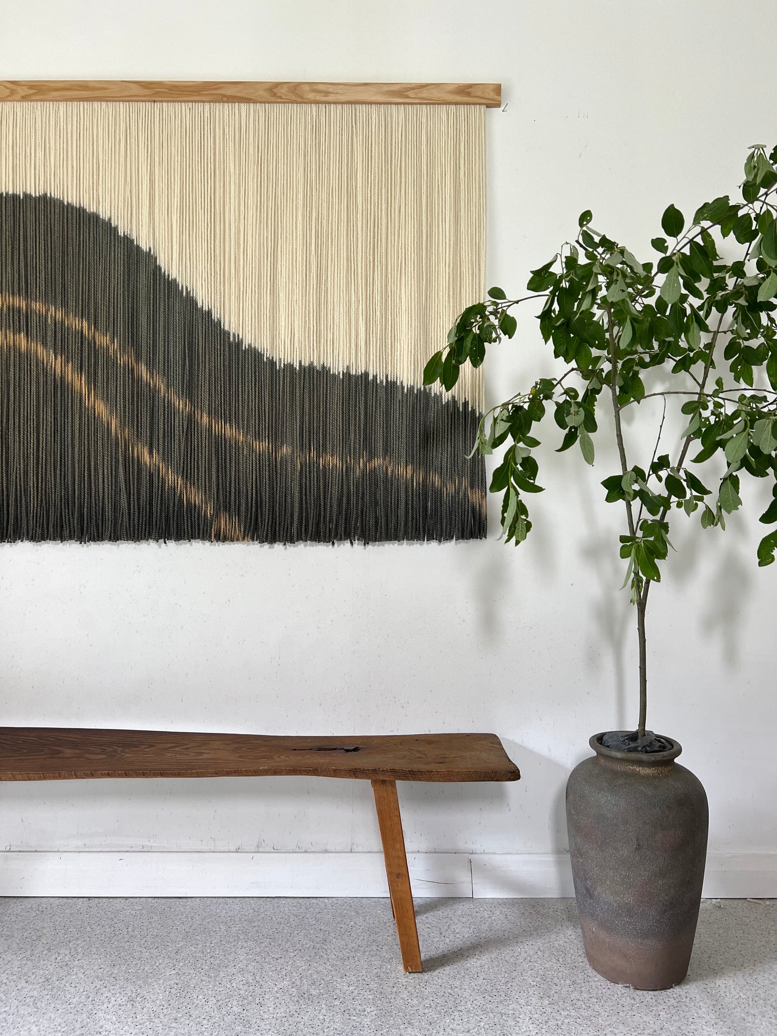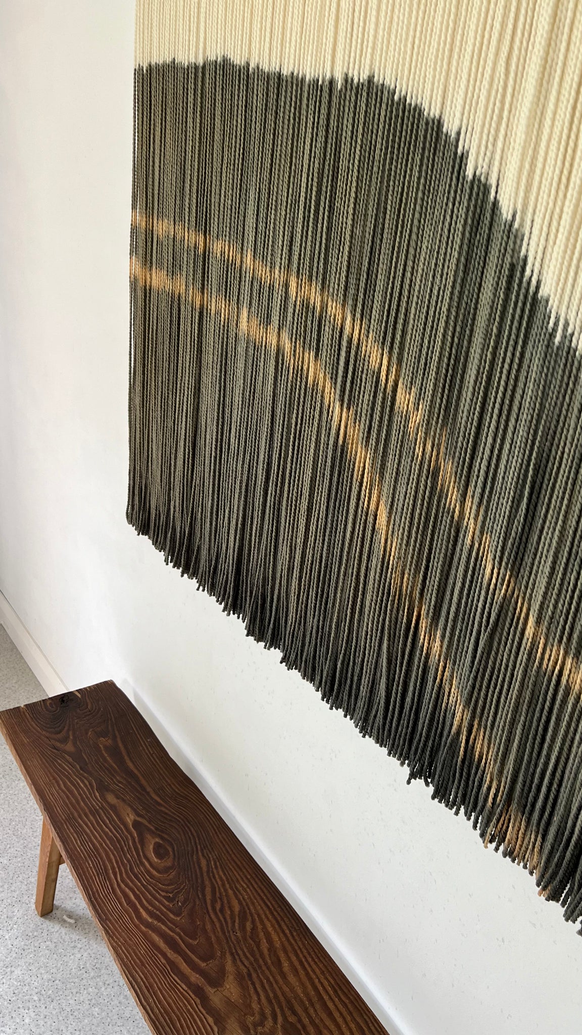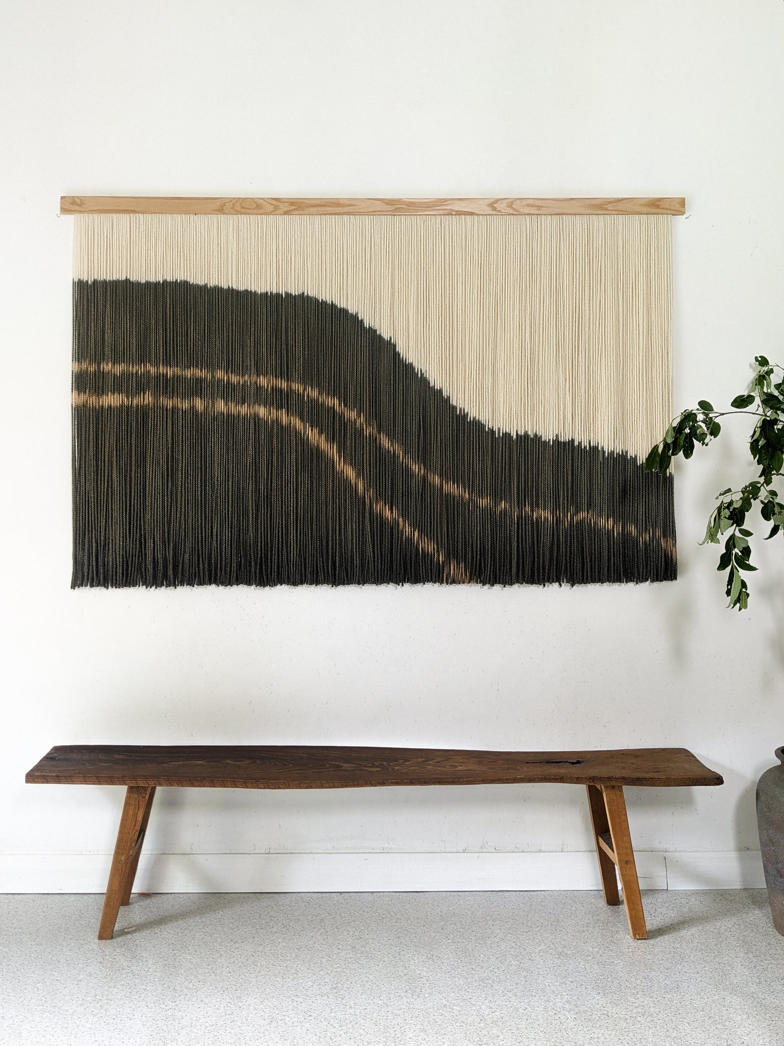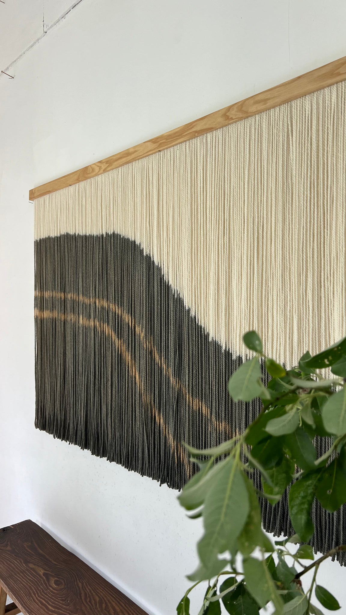 This dip dye wall hanging is made of natural color soft wool in shades of gray, charcoal, dark brown and light ginger finished with an oak wood panel. Fiber art like this will suit perfectly a minimalist living room, bohemian bedroom and warm office.